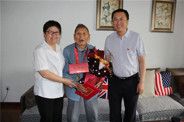 在建党100周年即将到来之际,党委副书记、工会主席王宏、纪委书记蔡高华与相关部室负责人于6月28日来到老党员张洪浩、史守田的家中,为他们颁发“光荣在党50年”纪念章,向他们转达党中央、集团公司和装备公司党委的关怀和祝福,向他们致以诚挚问候和崇高敬意。