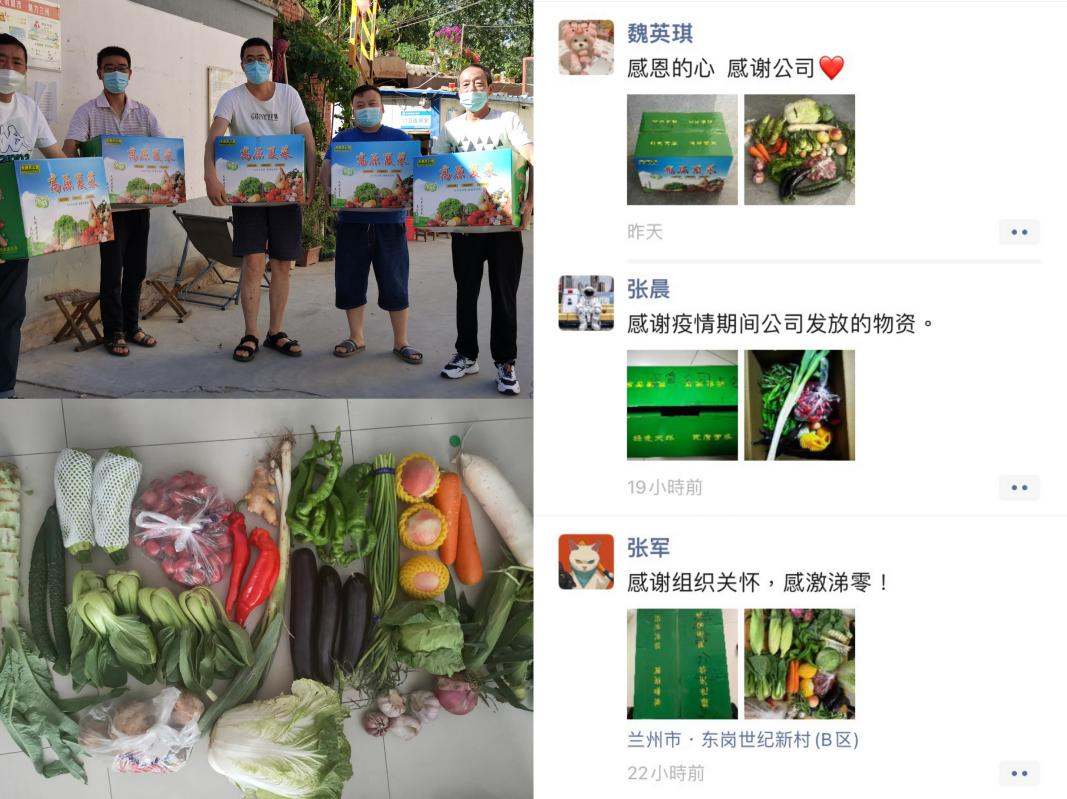 当前兰州本轮疫情防控仍面临严峻复杂形势,主城四区按照疫情防控要求实施临时管控,实行封闭式管理。为保障装备公司在兰职工居家期间的基本生活物资需求,确保职工有菜吃,装备公司工会把为职工提供生活物资保障作为疫情期间的重点工作内容,一方面抓紧时间统计职工家庭住址及联系方式,另一方面积极联系蔬菜供应商,优选土豆、白菜、西红柿等新鲜蔬菜,采取线上下单、线下无接触配送的方式为每一名职工送去了“爱心蔬菜包”。