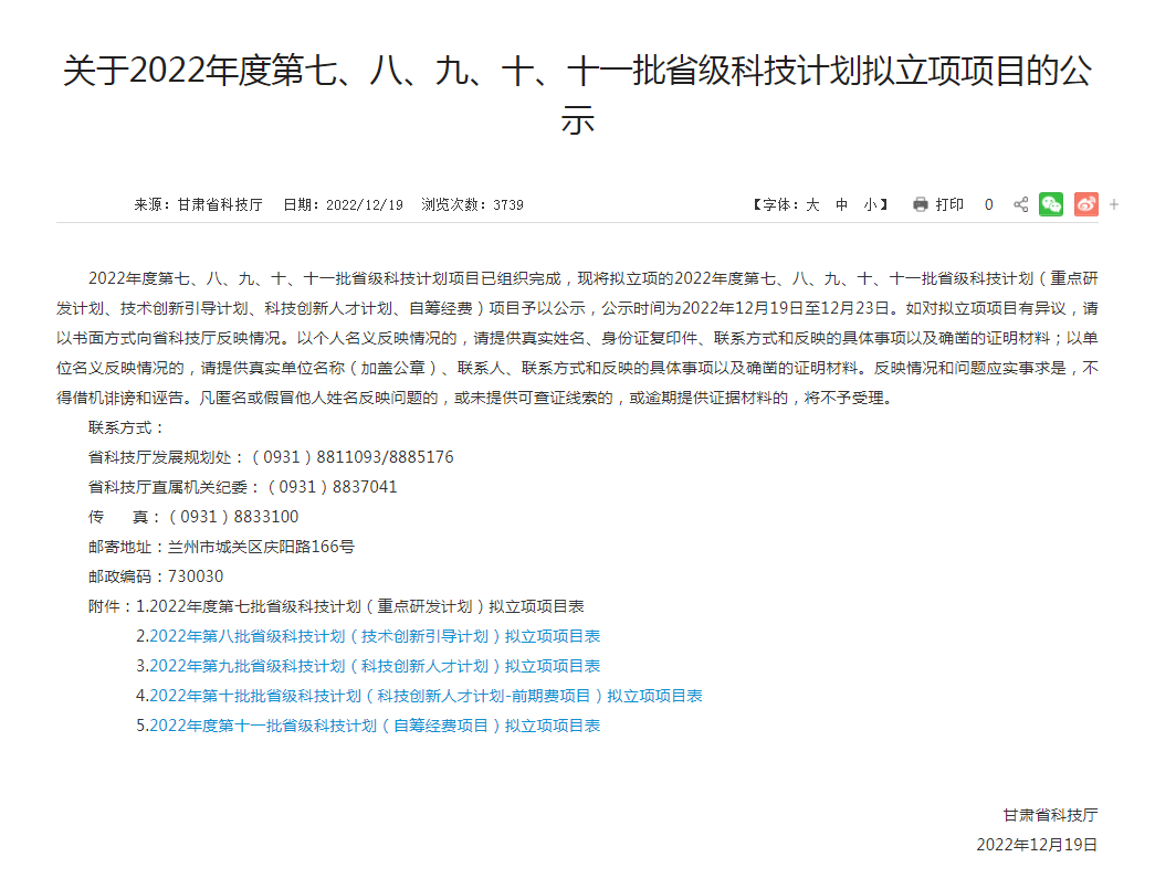 近日,甘肃省科学技术厅发布《关于2022年度第七、八、九、十、十一批省级科技计划拟立项项目的公示》,甘肃建投装备公司申报的甘肃建投装备产业技术研究院建设项目获批立项,并获批政府补助资金20万元,这是装备公司继2021年获批省级重点研发项目后又一次获批省科技厅科技计划项目。
