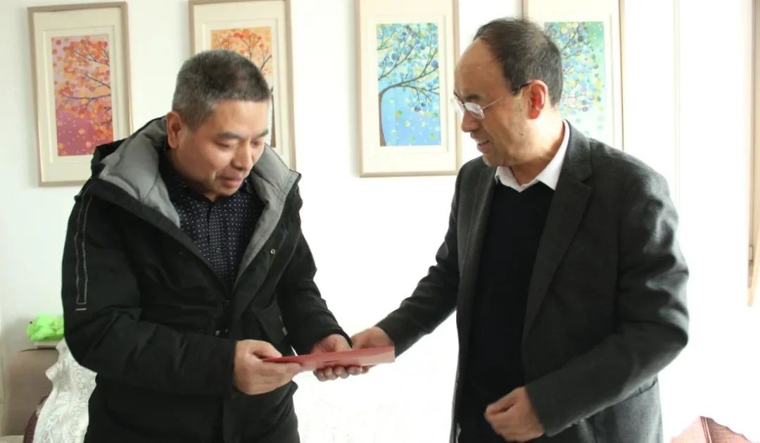 在新春佳节即将到来之际,1月31日,甘肃建投总法律顾问、董事会秘书毛宏勇一行来到装备公司困难党员郭军平家中进行慰问,并送去组织的关怀和新春的祝福。