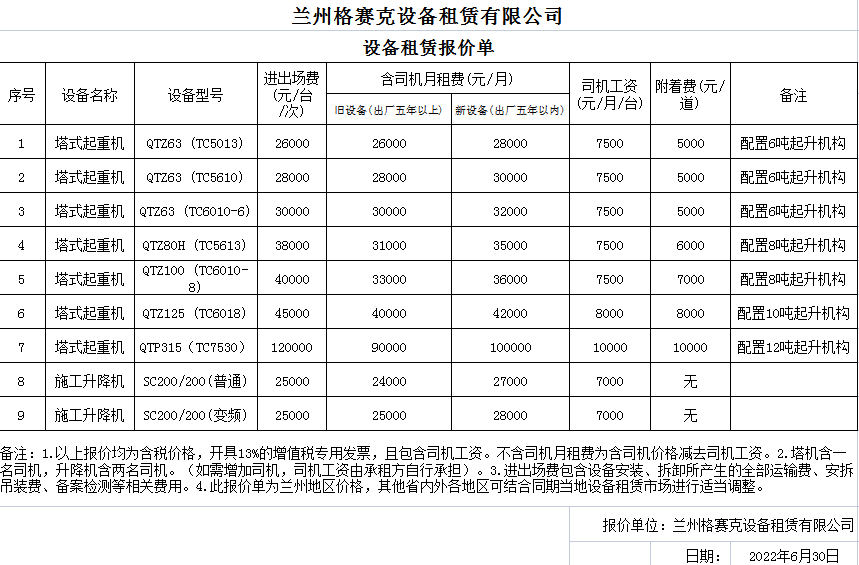 星空网页版设备租赁报价单(建投内部)