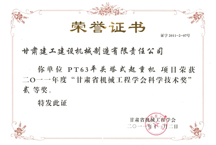 甘肃省机械工业学会科学技术奖