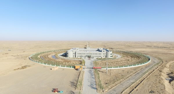 这一年,随着新能源公司武威凉州区腾格里沙漠两千亩试验沙丘的治理完成,意想不到的治理效果得到了国内外专家的高度认可,后续的十万亩沙漠试验基地也得到了批复,这也意味着甘肃建投新能源公司在治沙方面迈出了成功的第一步。在荒芜人烟的沙漠进行治沙试验,吃住、办公面临巨大问题,之前远在沙漠作业的工作人员都是租用附近村落老百姓的废弃农家院进行居住,条件十分艰苦。8月,在拿到设计图纸后,沙漠基地综合楼的建设迅速展开。