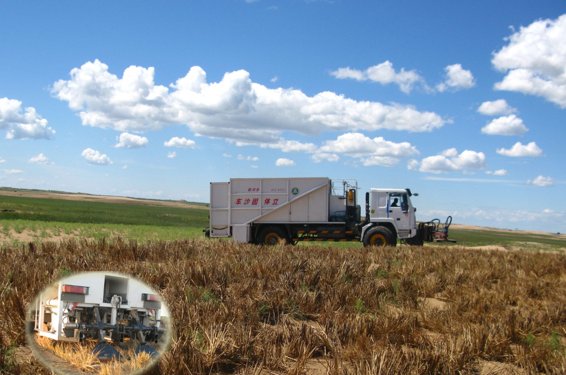 鉴于我国是一个严重缺水的国家,而且南北分布严重不均,由于人类生活对环境的严重破坏,造成尤其是西北地区人均水资源量明显下降。本来我国西北部高原地区干旱少雨,干燥土壤在强大风力作用下遭到侵蚀,有机物等严重流失,造成土地贫瘠退化甚至沙化。随着环境的日益恶化,世界对植被的生态作用日益重视,甚至超过了对经济价值的追求。加强生态建设,维护生态安全,是二十一世纪人类面临的共同主题,也是我国经济社会可持续发展的重要基础。国家林业局已制定了尽快提高林草覆盖率、减少水土流失和风沙危害的总体思路。通过研究现有的治沙技术和方法结合现代机械设计理论,形成了基于草方格固沙和化学固沙相结合的综合固沙理论、基于沙土换元技术的沙漠土壤改良理论和沙漠滴灌技术。草方格固沙和化学固沙相结合综合固沙技术对沙漠地区整体进行网格化划分并对网格内沙地地表进行强化固定,这项技术有利于沙地地表以下减少水分流失速度,而基于沙土换元技术的沙漠土壤改良技术则有效改善沙地种植条件,有效提高植物的成活率,达到快速促进沙地植被构建,实现有效进行沙漠治理的效果。