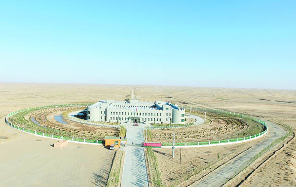 新闻链接:甘肃建投自主研发生产的世界首台"牵引式单项固沙车"图(一)。该产品已取得多项国家专利,并投入试验治理及有关治沙项目使用;工程与生物治沙试验基地获批十万亩沙漠治理区,各项实验、研究工作顺利进行;占地一千多亩的甘肃建投新能源公司厂区及保障设施建成并投入使用,满足治沙设备的大规模生产制造需要。2016年,经国家林业局批复,甘肃建投治沙基地被列为国家级"全国荒漠化防治(机械治沙工程)试验示范基地"图(二)。甘肃建投工程与生物治沙实验基地位于武威市凉州区九墩滩腾格里沙漠南部边缘,占地10万亩,在前期2000多亩实验基地内,实验完成各类草方格的铺设工作,治理效果显著,形成了成熟的固沙、治沙及沙产业开发技术和模式,已逐步形成了以建设生态环境为宗旨,利用固沙技术、生物技术和沙产业开发技术,实现沙区综合治理和可持续发展的工程与生物治沙模式。目前,各项工作进展顺利。 (通讯员 辛瑞德)