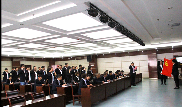"我宣誓: 我志愿加入中国共产主义青年团……"会场上,铮铮誓词震撼人心。表彰会在全体团员代表重温入团誓词中拉开帷幕,再一次接受了思想洗礼。会议表彰五四红旗团支部2个、优秀共青团干部2名和优秀共青团员14名。会上还进行了2019年"导师带徒"签约仪式。获奖代表做了交流发言,师徒对子代表就行了表态发言。